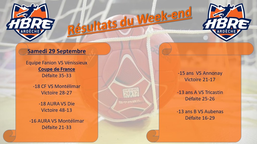 Les -13 ans n’ont pas eu de réussite ce week-end. L’équipe A s’est inclinée 25-26 contre Tricastin. Souvent menés au score, les bleus se sont montrés beaucoup trop passifs et n’ont jamais pu imposer leur jeu. Pour sa première rencontre, l’équipe B n’a rien pu faire face à Aubenas (16-29).