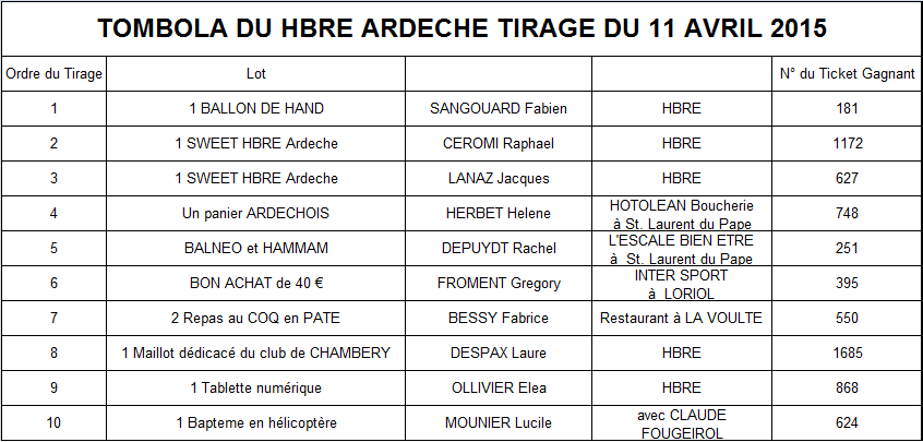 Voici les résultats de la tombola félicitation a tous les vainqueurs!!!